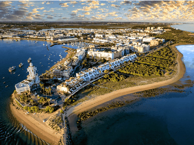 An overview of this coastal region in Andalusia. Huelva is known for its geographic connection to historical maritime routes and its typical marshland ecosystems.